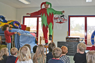 Till Eulenspiegel, neu erfunden für das Alter von 3-6 Jahren,ca.40 mit kindlichem Schabernack vermittelt er die Märchenwelt, auf eine lustige Art und Weise, bei der sich oft fleissige Hände aus dem Publikum als Helfer anbieten.